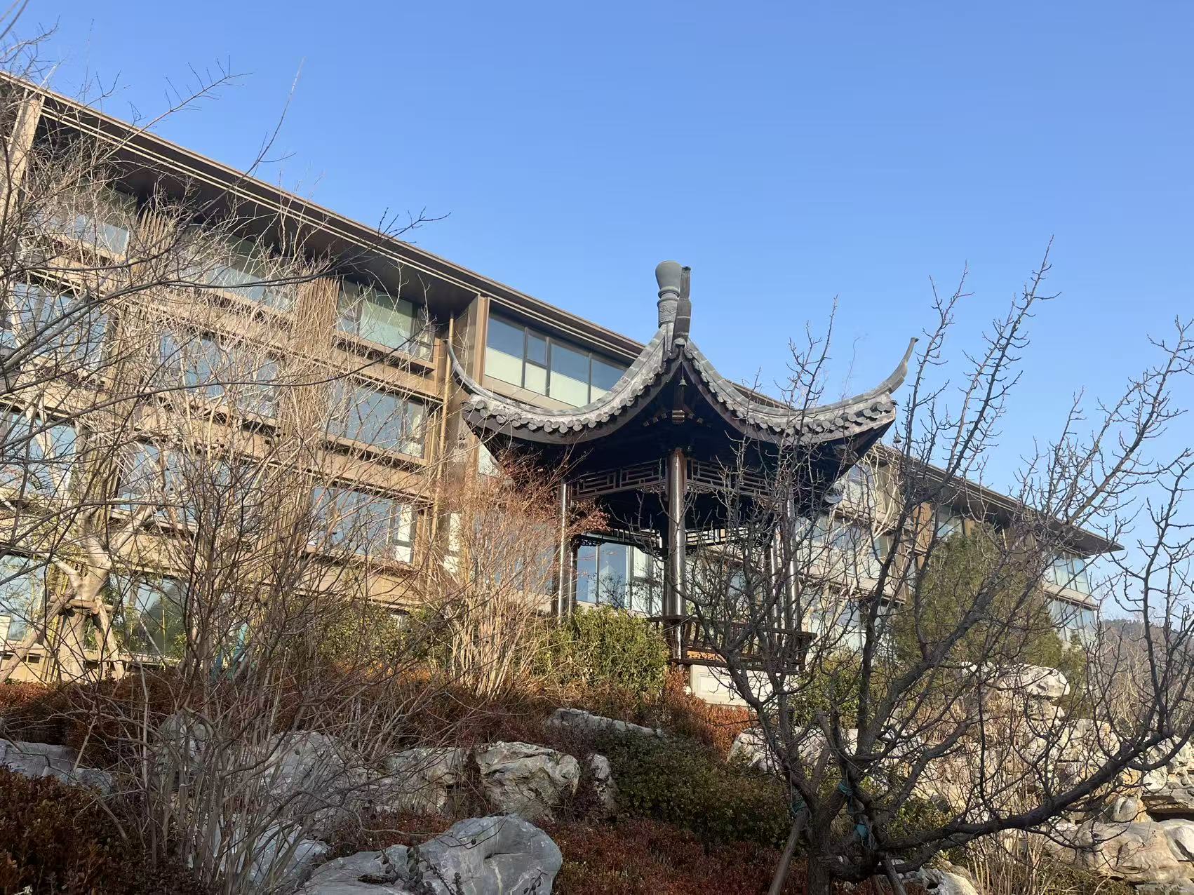 项目的南北两区——云龙府与天胤府,其名分别源自《周易》与《尚书》,文化底蕴深厚。云龙府的园林设计,直接取法自皇家园林典范——北京北海镜清斋。镜清斋原为清代皇太子书斋,以叠石艺术闻名。泰山龙胤将其精髓融入社区主景“镜清阁”,营造出“山峦翠色连清阁,叠石掩映自成趣”的诗画意境。镜清阁两侧的卷轴式水景设计,更添一缕书香文脉。