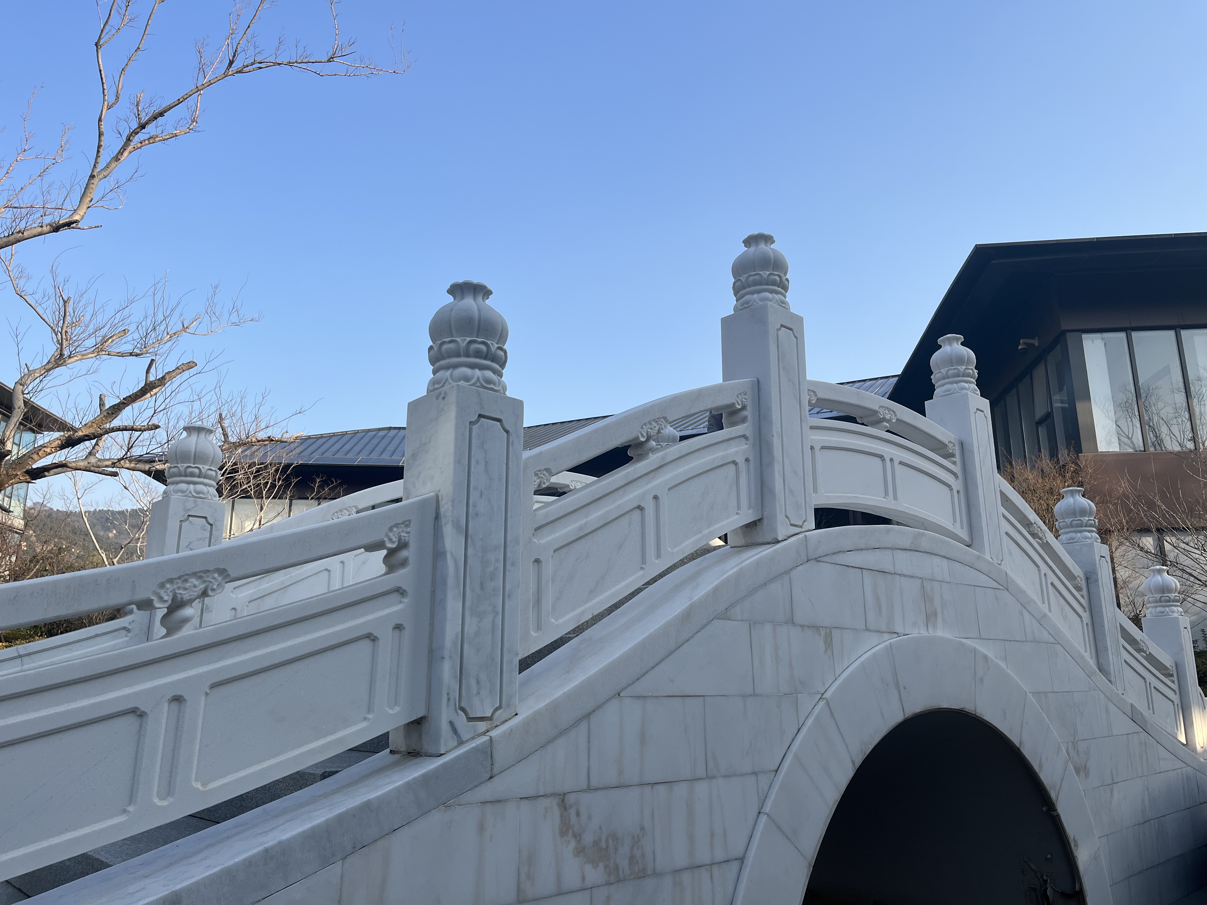 园内,造价数十万元的汉白玉“鸿运桥”静卧碧波之上,连接两岸风景;采用传统木榫结构搭建的“好善亭”立于高处,可俯瞰满园湖光山色。园林用石极为考究,假山选用英德石、太湖石,湖岸点缀黑山石,均为传统造园的顶级石材,共同堆叠出自然野趣与人工匠心的完美结合。