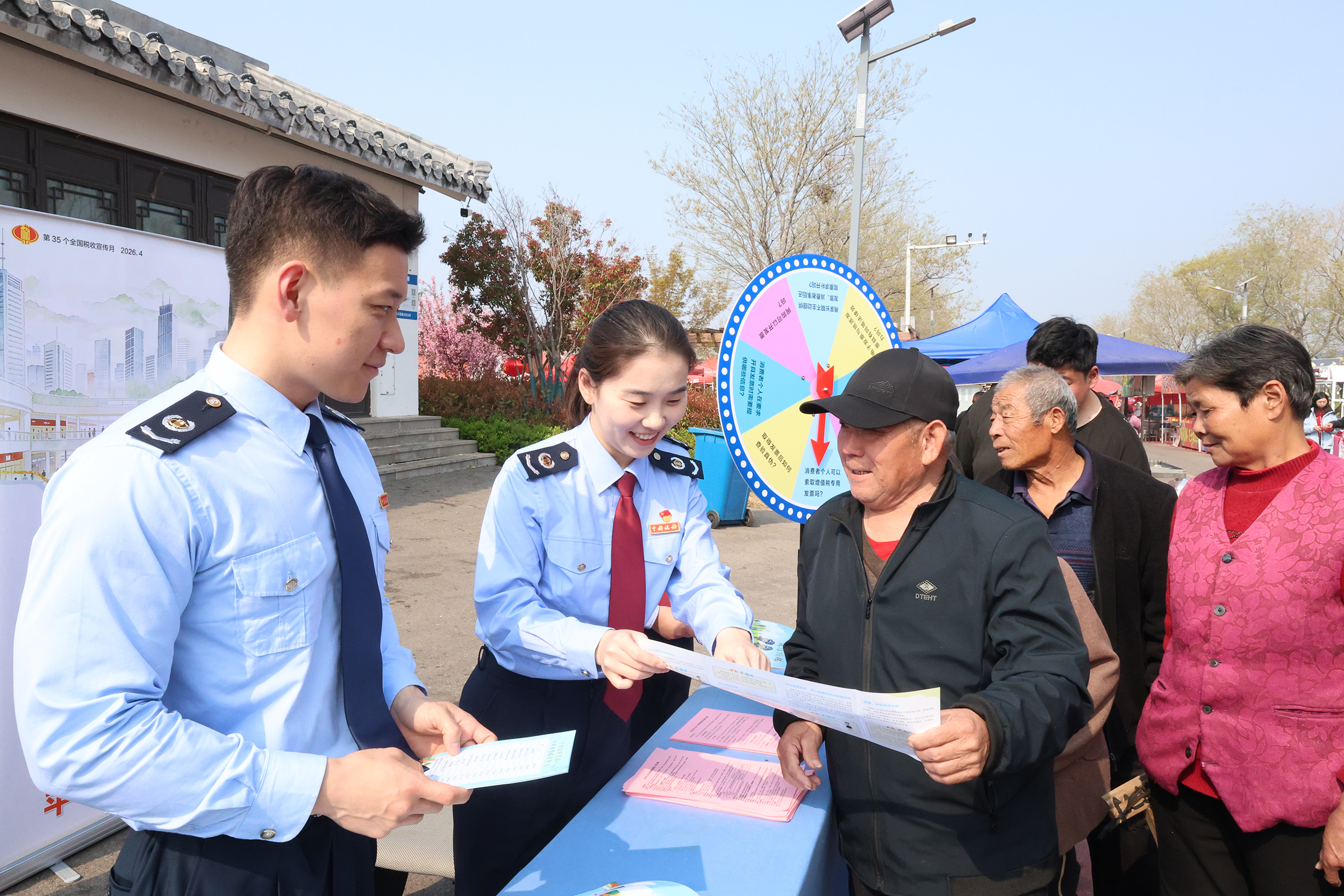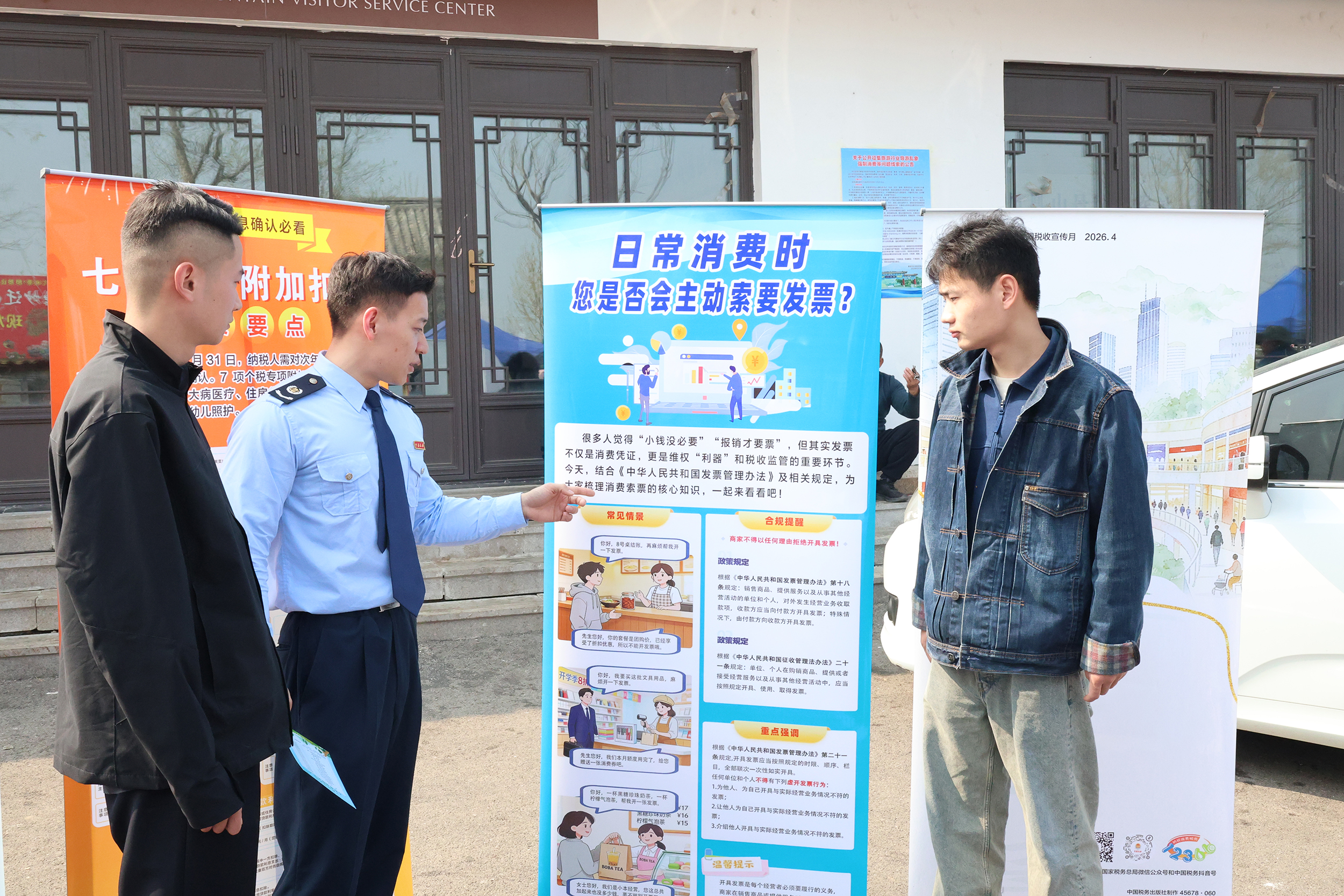除了互动游戏区,税务骨干与青年志愿者还穿梭于梨花节现场,为游客、周边商户和当地群众发放税法宣传资料,针对大家关心的税费问题进行现场解答。