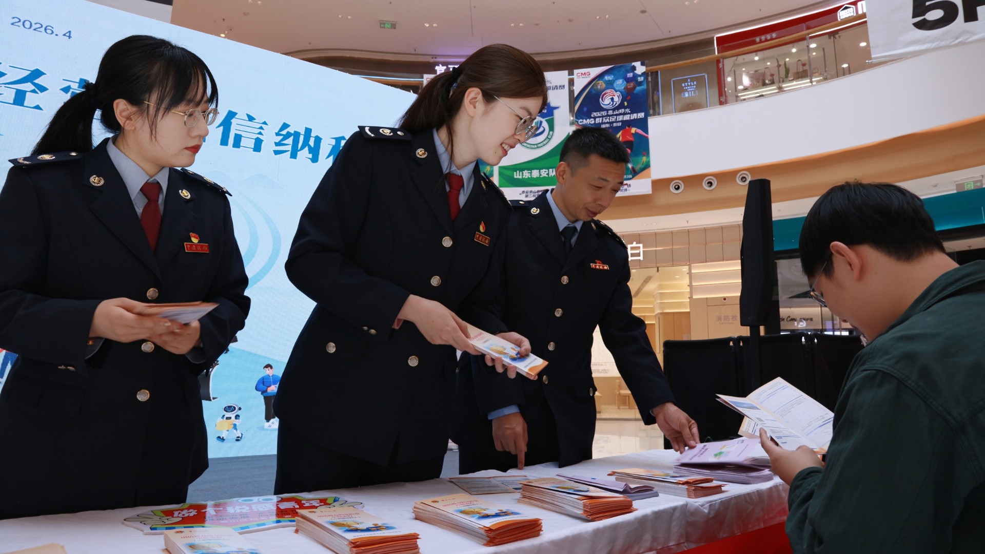 近日,泰山区税务局在泰安泰山吾悦广场举行第35个全国税收宣传月启动仪式,以“税收·法治·公平”为主题,围绕纳税人缴费人实际需求,开展系列便民服务活动,正式拉开为期一个月的税收宣传服务大幕。