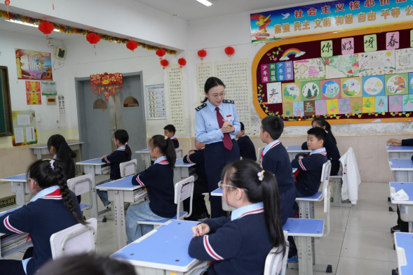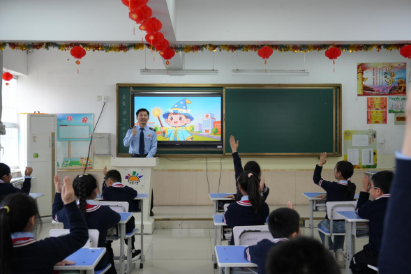 课堂上,税务干部化身“魔法老师”,通过课堂讲解、互动游戏等趣味形式,把抽象的税收知识转化为生动易懂的内容,同学们踊跃举手、积极互动,在欢声笑语中学习税收知识。