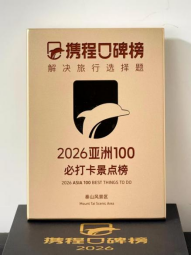 携程口碑榜2026年度榜单基于服务全球190个国家超2亿用户的经验,用3亿+次真实的出发,书写可靠的“旅行答案之书”。2025年,携程海外平台Trip.com韩国及马来西亚双站点同步上线“泰安文旅星球号旗舰店”,带动泰安市在线旅游市场入境游总人次同比增长31.7%,总消费同比增长27.85%。泰安市此次跻身“全球50山水风光目的地”,彰显了其在全球山水旅游领域的核心竞争力。
