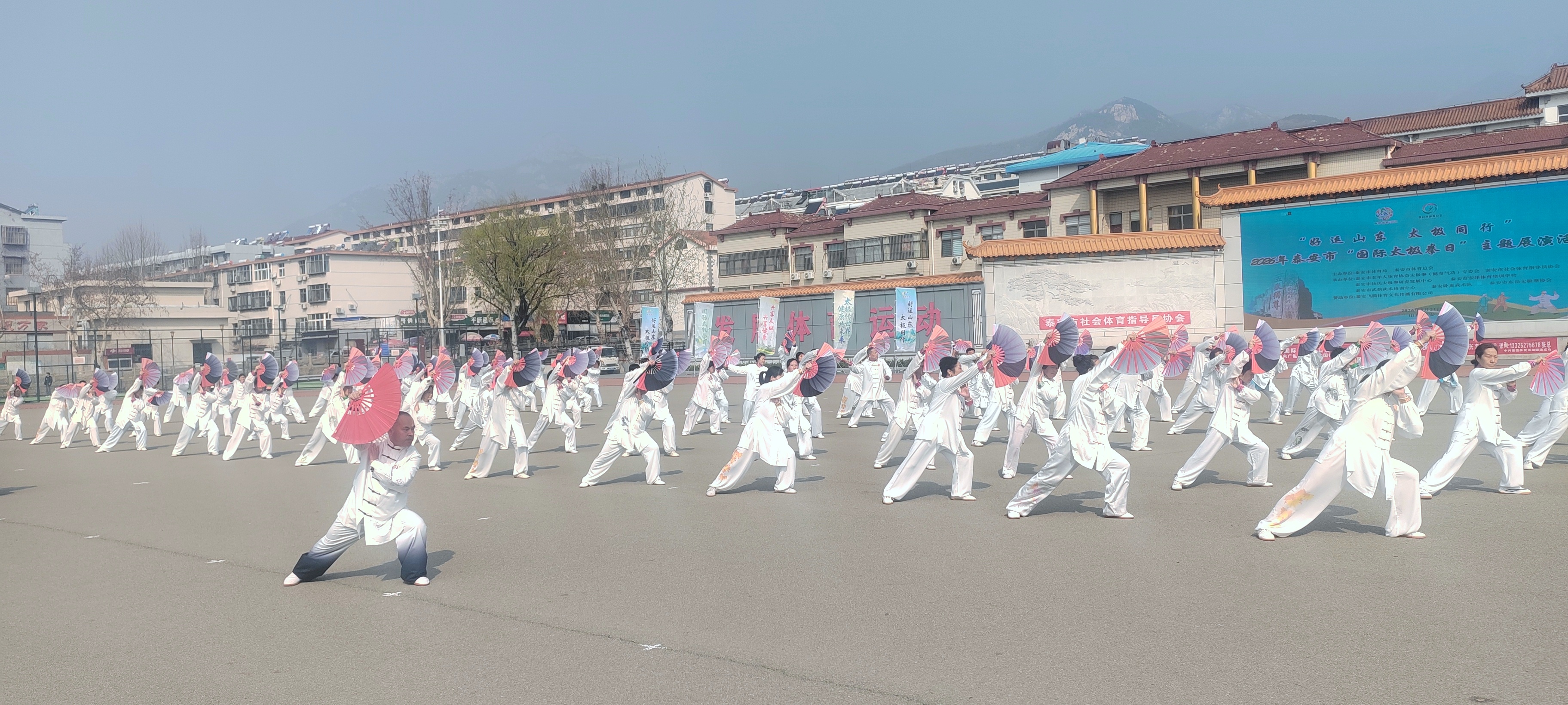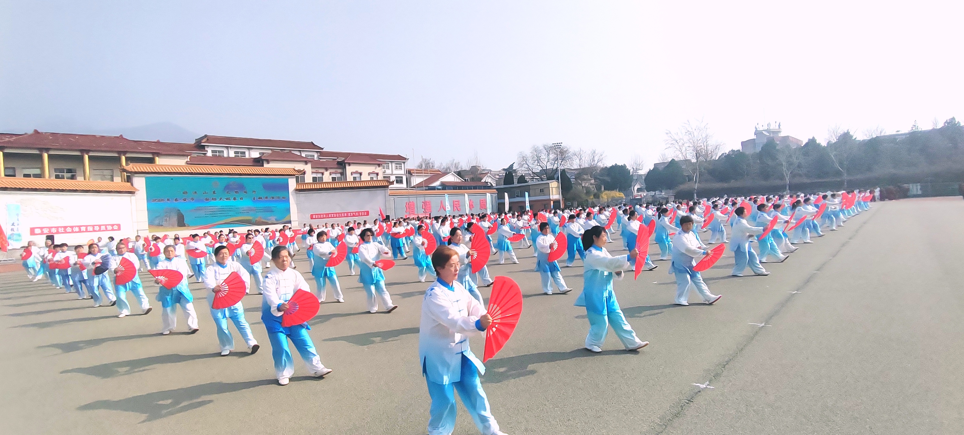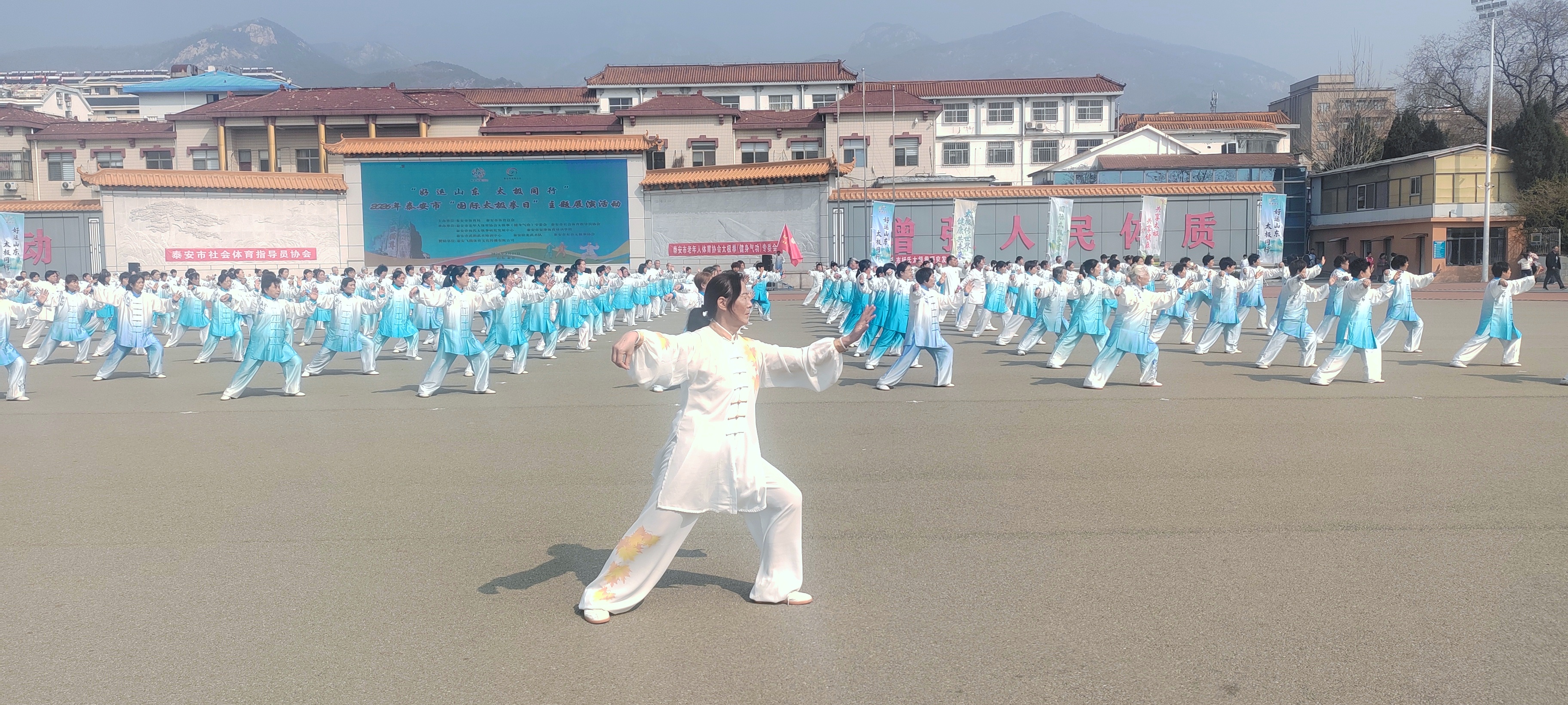 春回大地启新程,太极神韵耀泰山。为热烈庆祝首个“国际太极拳日”,落实全民健身国家战略、弘扬中华优秀传统文化,3月21日上午,泰安市老体协太极拳(健身气功)专委会在林校操场举办“好运山东 太极同行”主题展演。千余名太极拳、武术爱好者齐聚现场,专委会领导班子成员参与活动并同台展演,以刚柔并济的招式共庆太极盛事,尽显泰安全民健身风采与太极文化独特魅力。
