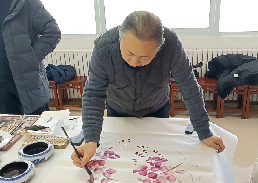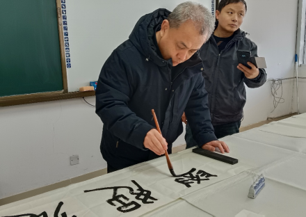 随后的艺术交流环节将活动推向高潮。艺术家们现场挥毫,一幅幅笔精墨妙的作品跃然纸上,引来师生阵阵赞叹。艺术家们还与同学们亲切互动,分享创作心得,示范书画技巧,在笔墨流转间传递艺术的温度与深度。