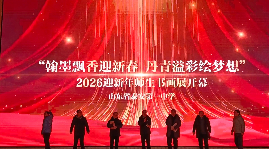 1月20日,山东省泰安第一中学“翰墨飘香迎新春,丹青溢彩绘梦想”2026迎新年书画展在新校区艺术馆隆重开幕。泰安市文学艺术界联合会党组书记、主席李建蔚,市文联党组成员、二级调研员孙黎,市书法家协会主席倪和军、市美术家协会主席逯建民等领导与艺术家应邀出席,与学校师生共迎艺术新春,共话美育未来。