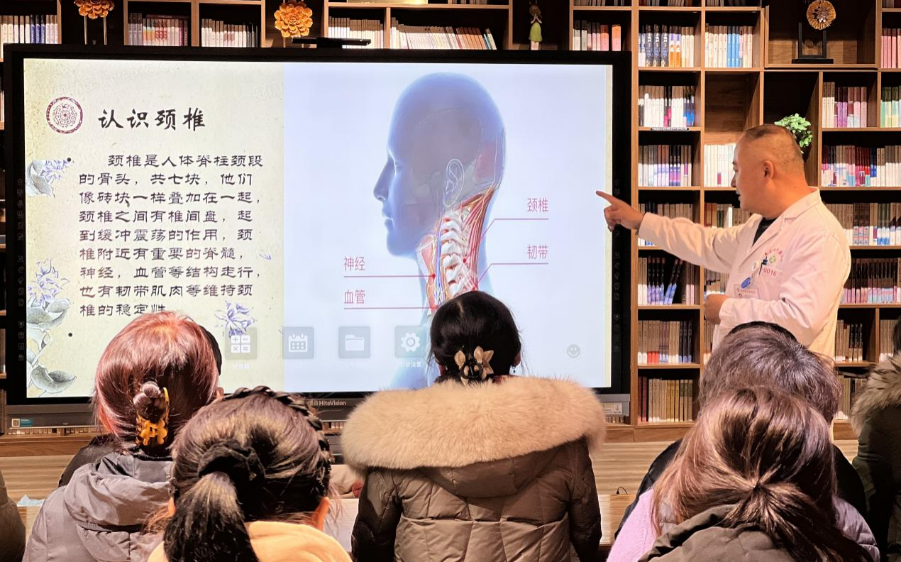 随后,杂病门诊主任赵振带来《小颈椎大问题》专题讲座,从现代人群生活习惯入手,剖析颈椎病的成因、早期症状与潜在危害,分享中医特色预防方法,现场示范简单易行的颈椎保健操,引导居民通过科学作息与日常锻炼守护脊柱健康。