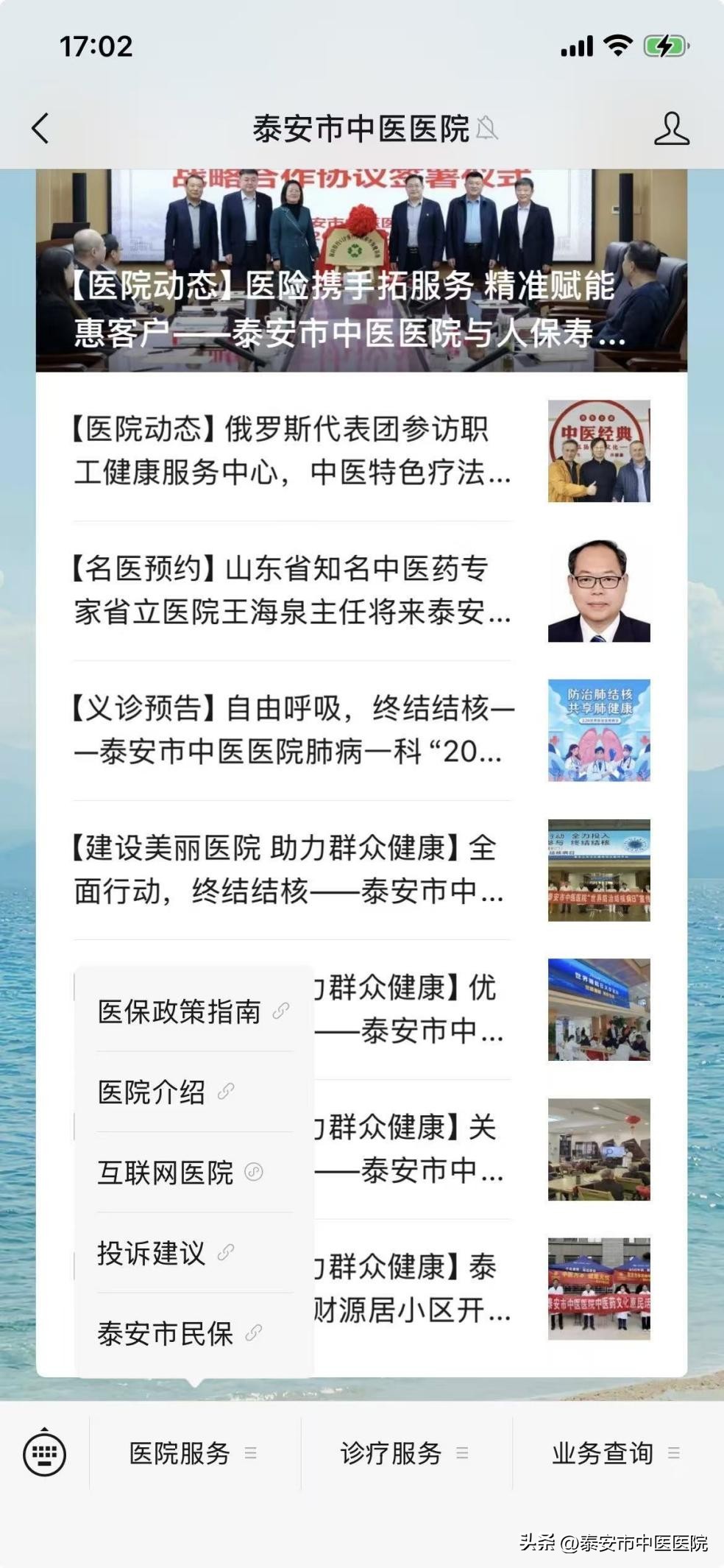 2.服务号登录:关注“泰安市中医医院服务号”,点击“医院服务”选择进入互联网医院。