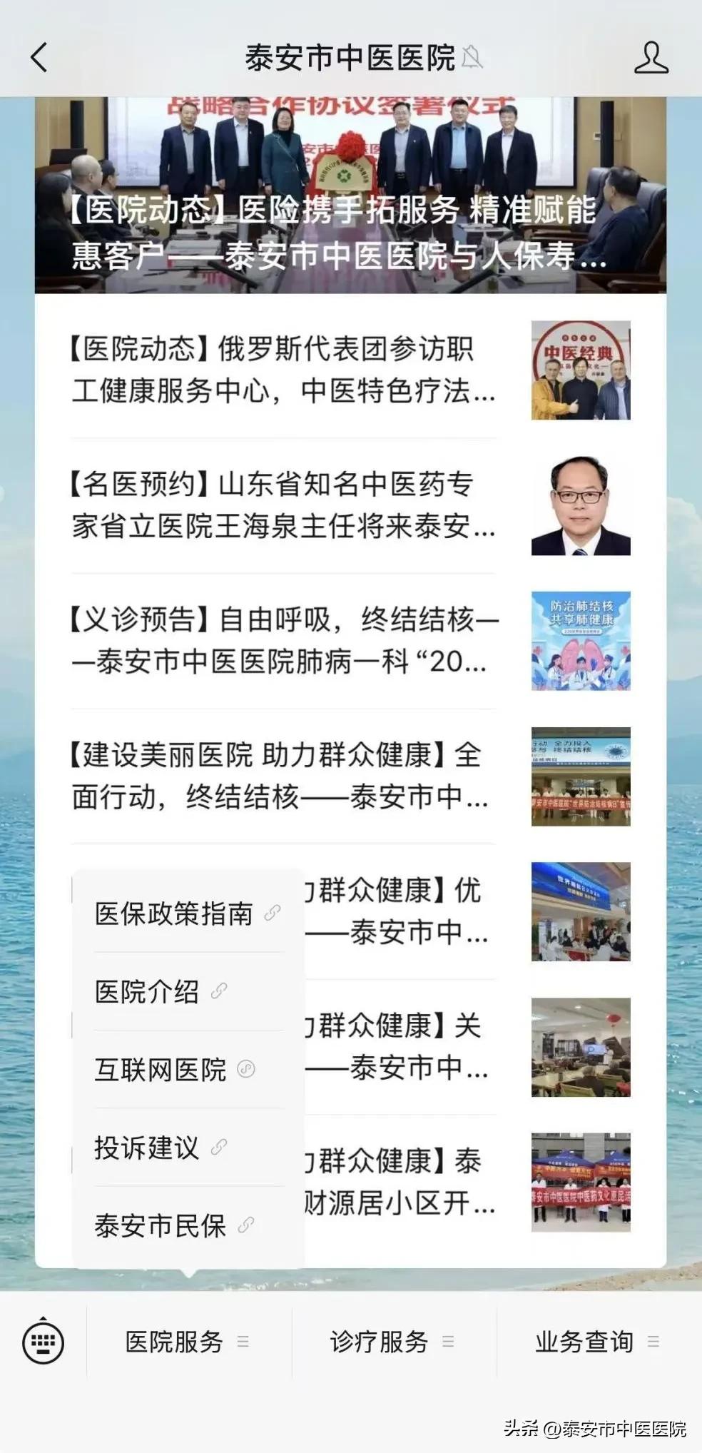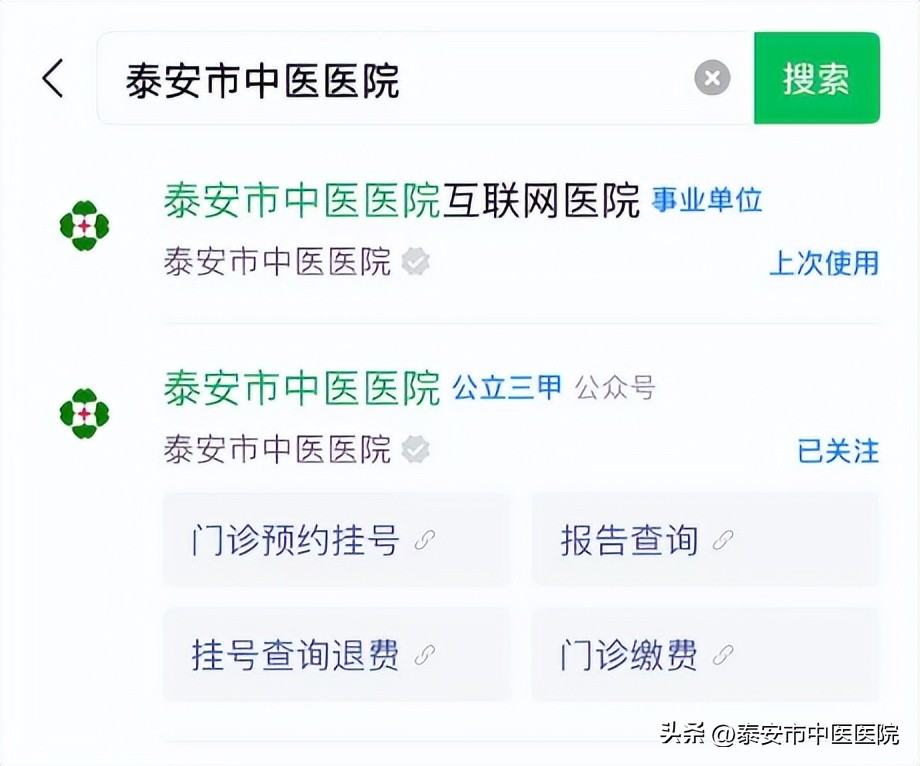2.服务号登录:关注“泰安市中医医院服务号”,点击“医院服务”选择进入互联网医院。