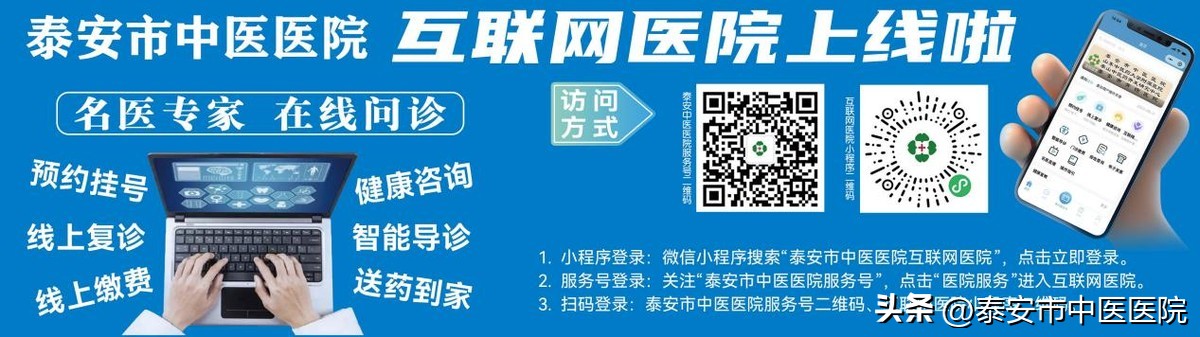 3.扫码登录:泰安市中医医院服务号二维码、互联网医院小程序二维码。