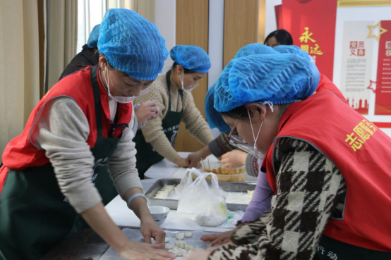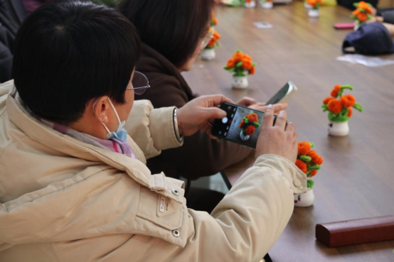 活动现场分为两大体验区域,气氛热烈。水饺制作区内,志愿者默契协作,擀皮、包馅,在忙碌中闲话冬至旧俗,浓浓面香承载着温馨记忆。手工制作区同样人气十足,在指导老师的帮助下,“寿星”们专注地制作“柿柿如意”扭扭棒盆栽,从零开始完成一件件精致作品。大家手捧亲手制作的盆栽,笑容洋溢,成就感满满。两区活动并行,欢声笑语交织,共同绘就了一幅其乐融融的民俗体验画卷。