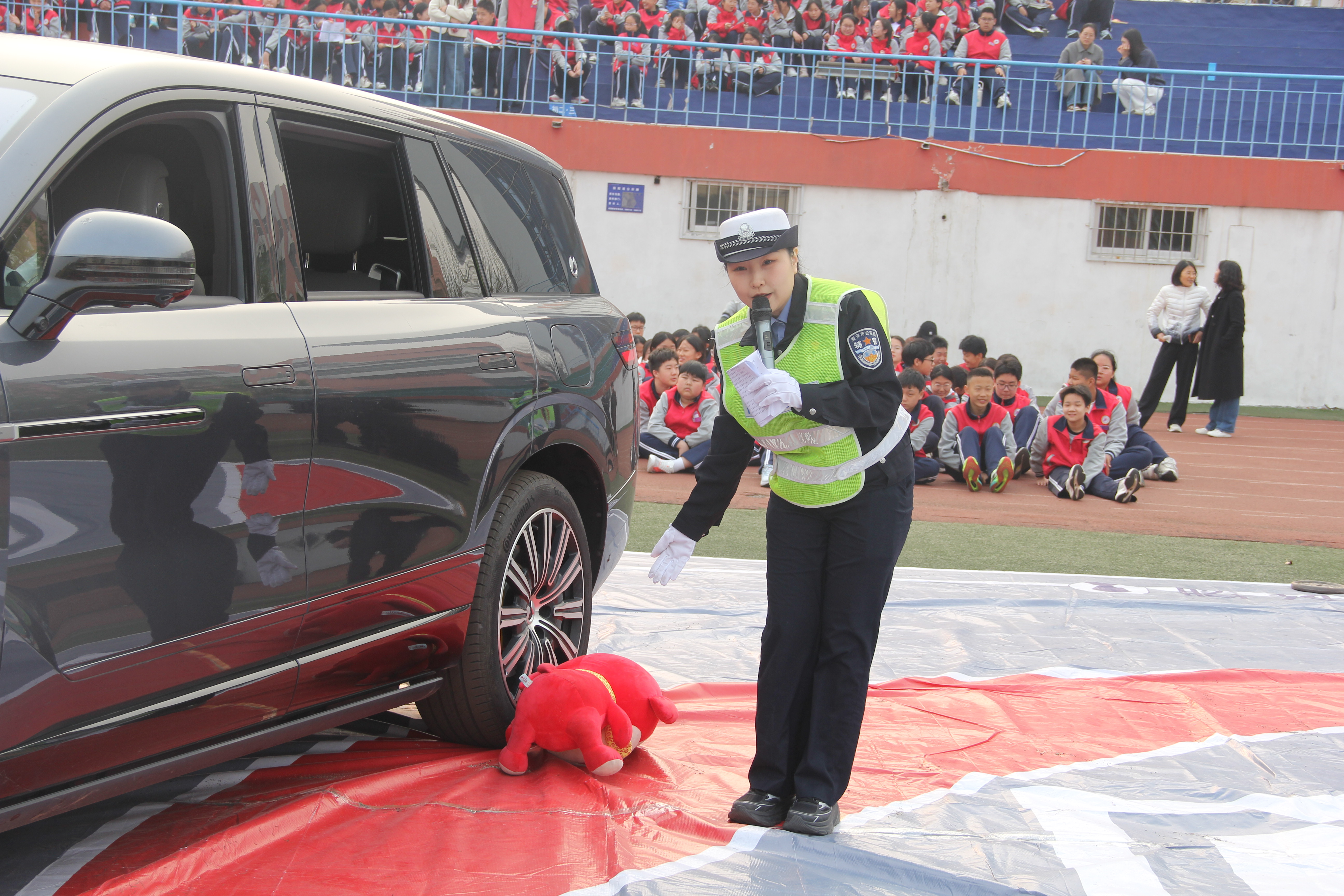 活动中,大队结合“文明交通 礼行天下”等主题,以头盔实物实验、情景演示等环节,用西瓜、气球模拟头部撞击实验,用破碎的西瓜直观展示佩戴头盔的重要性用看得见、摸得着的方式,让安全知识入脑入心。现场还原过马路突然折返、鬼探头、开门杀、内轮差、车辆视野盲区等高危场景,以沉浸式体验揭示危险瞬间,使同学们在直观、生动的教育形式中提升安全意识。并通过趣味问答等环节,增加活动的趣味性和参与性,让同学们在互动中认清交通隐患,牢记“守交规 筑安全”的重要性,潜移默化掌握知危险、会避险的自我保护能力。活动最后,大队民警号召同学们通过今天的实验与演示,把安全记在心中、落在行动上,上放学路口,守交通、避风险,做自己安全的第一责任人,同时发挥小手拉大手的作用,带动家长朋友们共同营造安全、有序、畅通的道路交通环境。