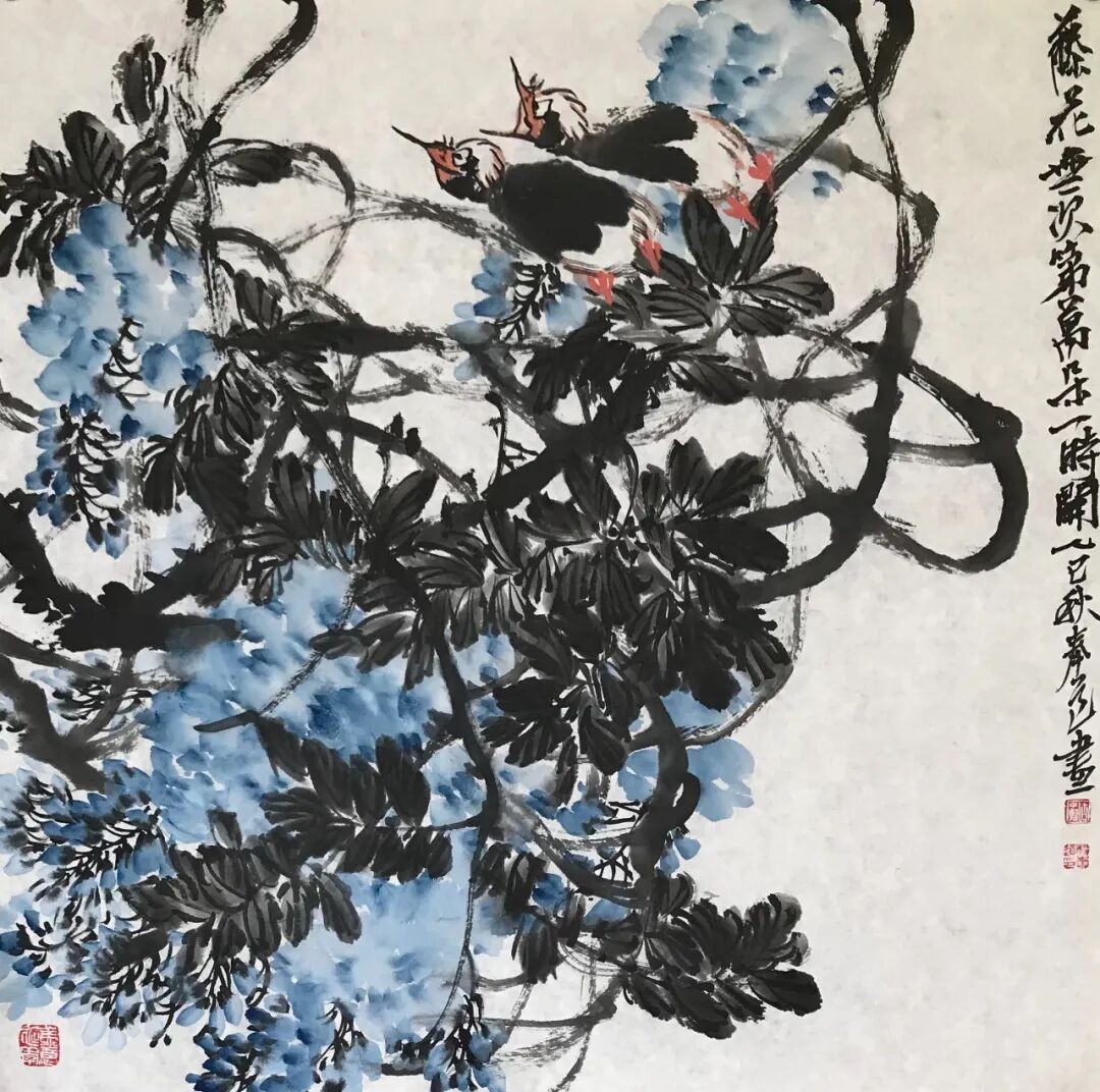 藤花无次第 万朵一时开 68x68cm