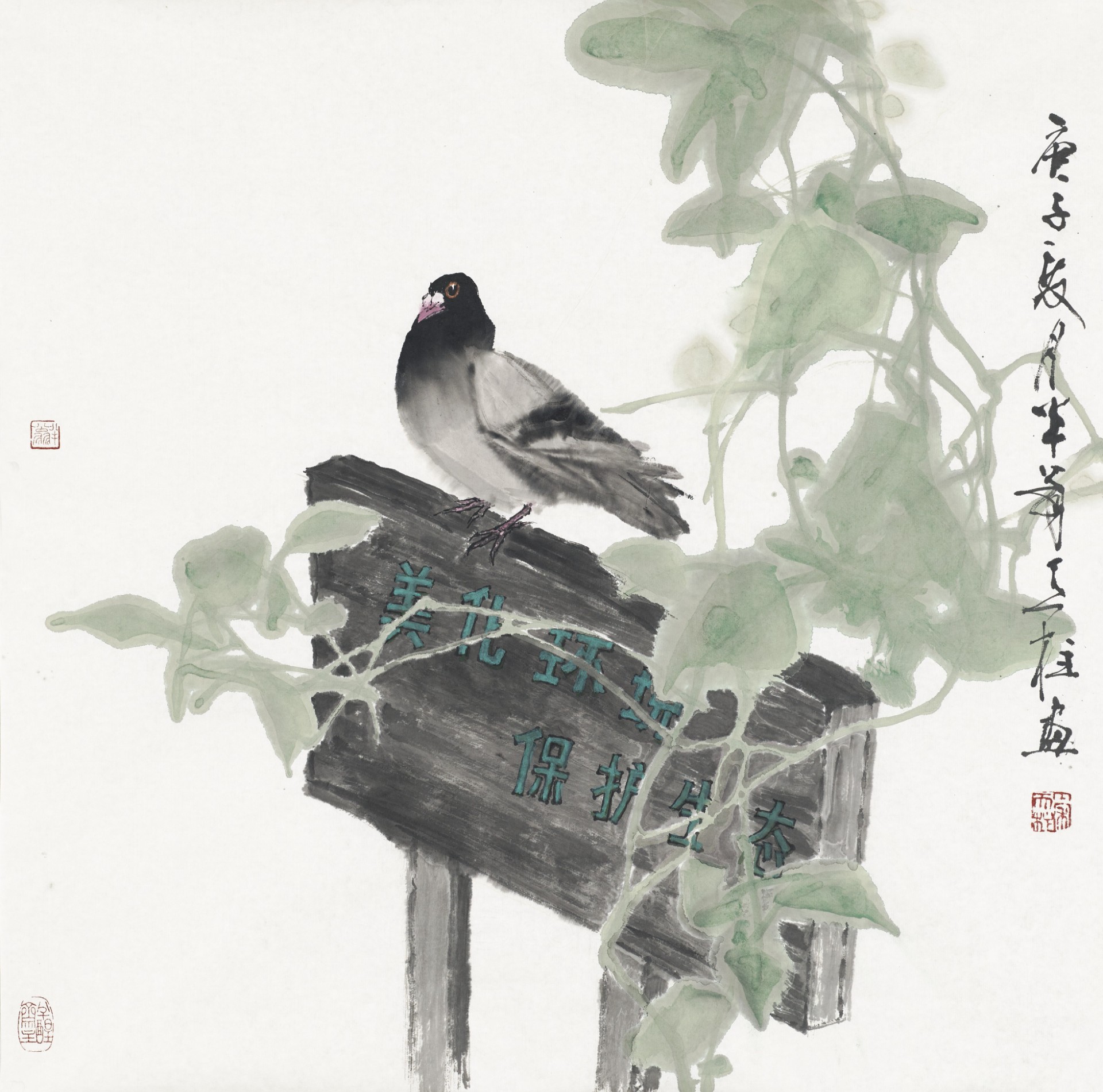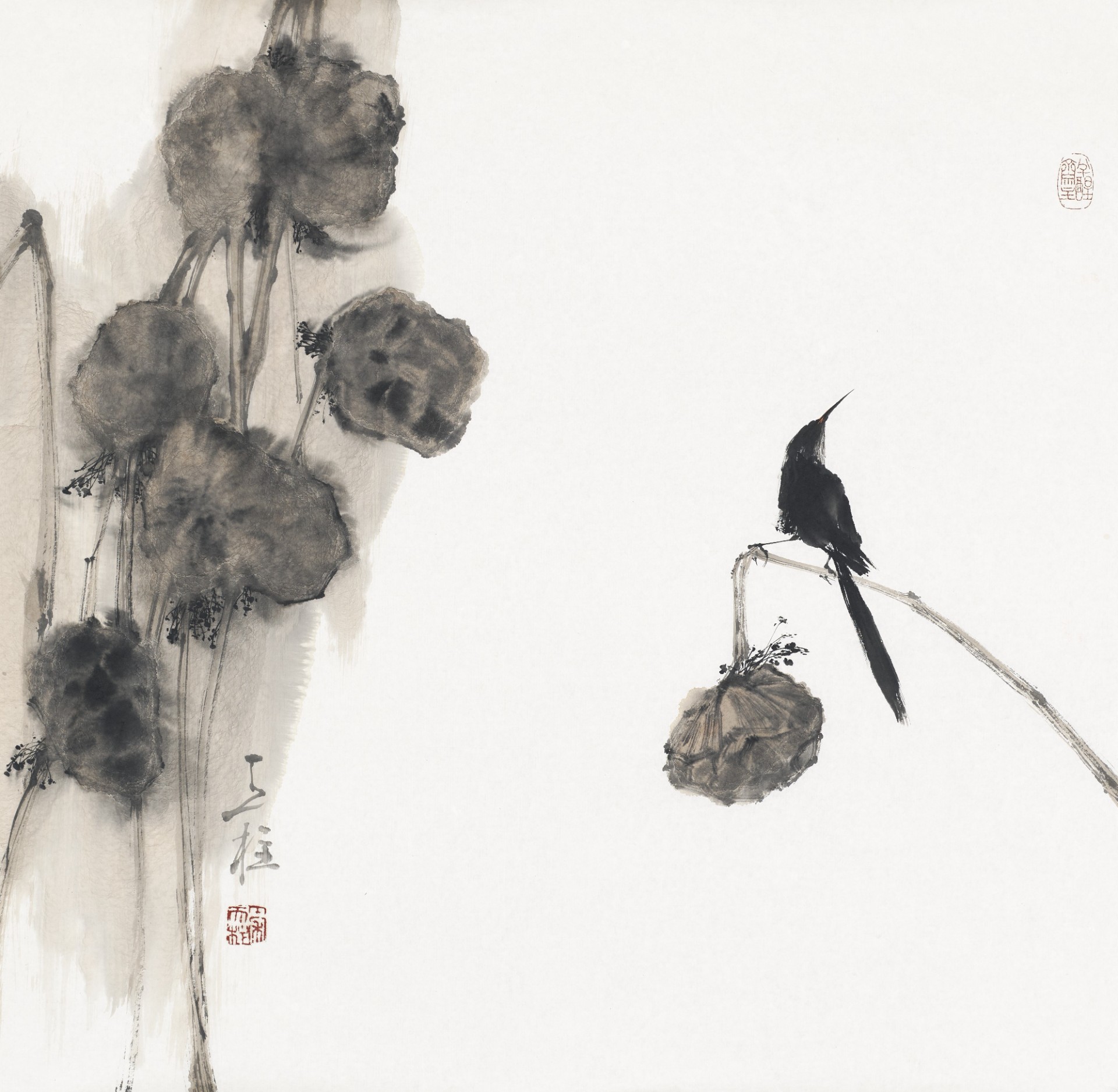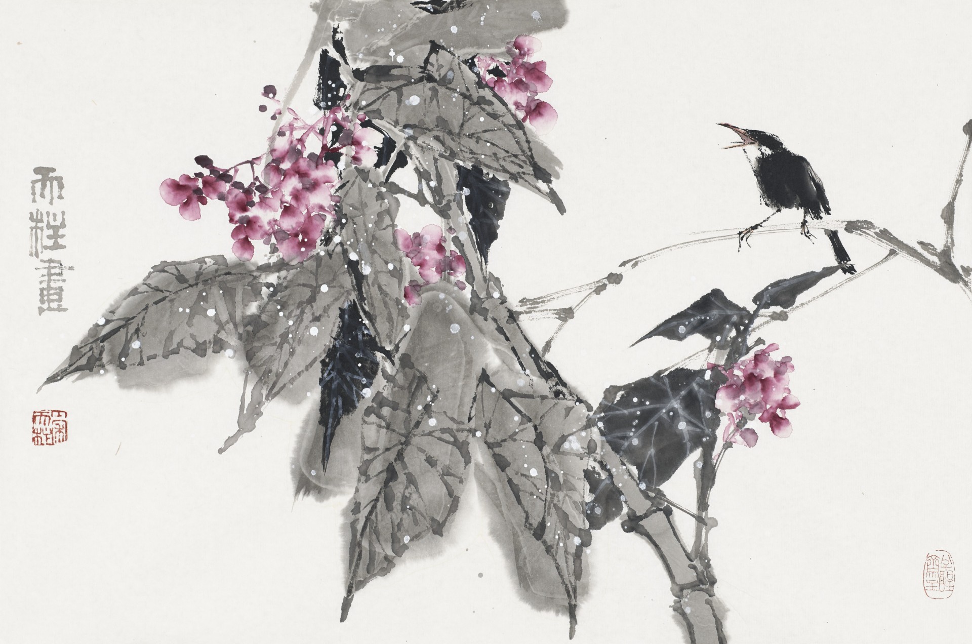 秦天柱(1952年-),生于四川成都。中国美术家协会会员、四川省文联委员、四川省美术家协会理事、四川省花鸟画会副会长、四川省诗书画院创研室主任、一级美术师。擅长写意花鸟画,主张有感而发,借物传情。作品追求意境,讲究构成,奔放而不粗狂,精微而不拘谨。画面清新淡雅,疏朗空灵,有诗一般的意蕴。