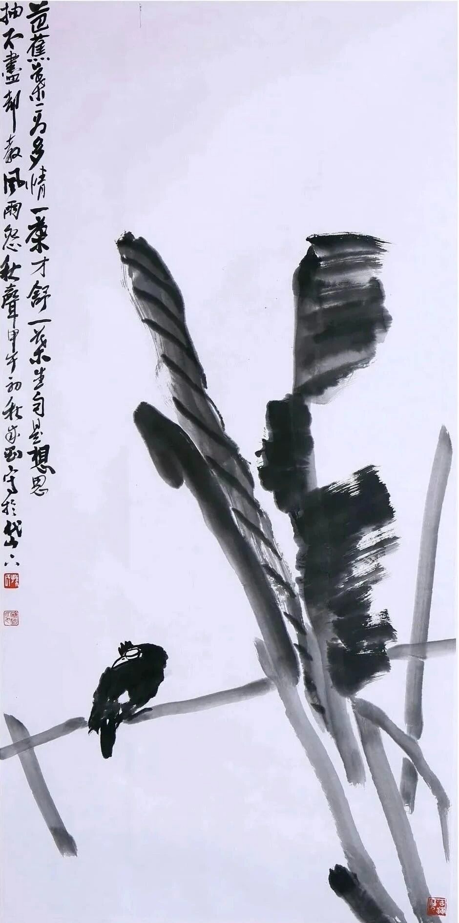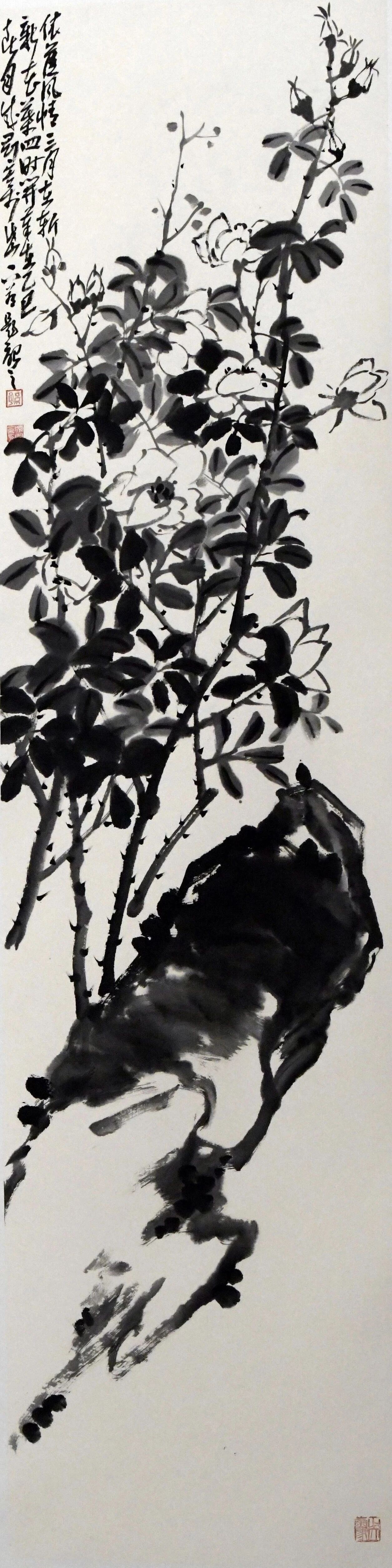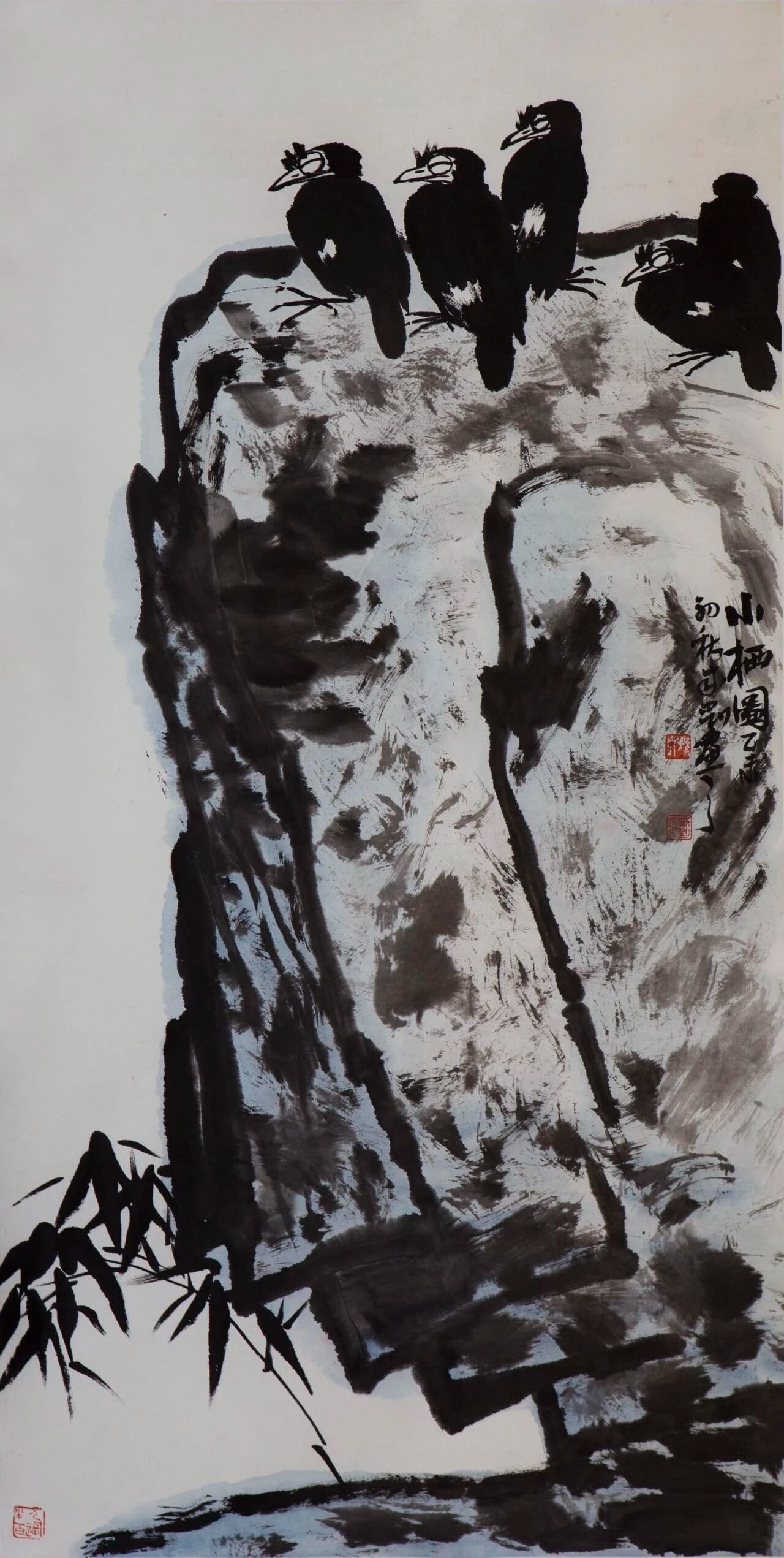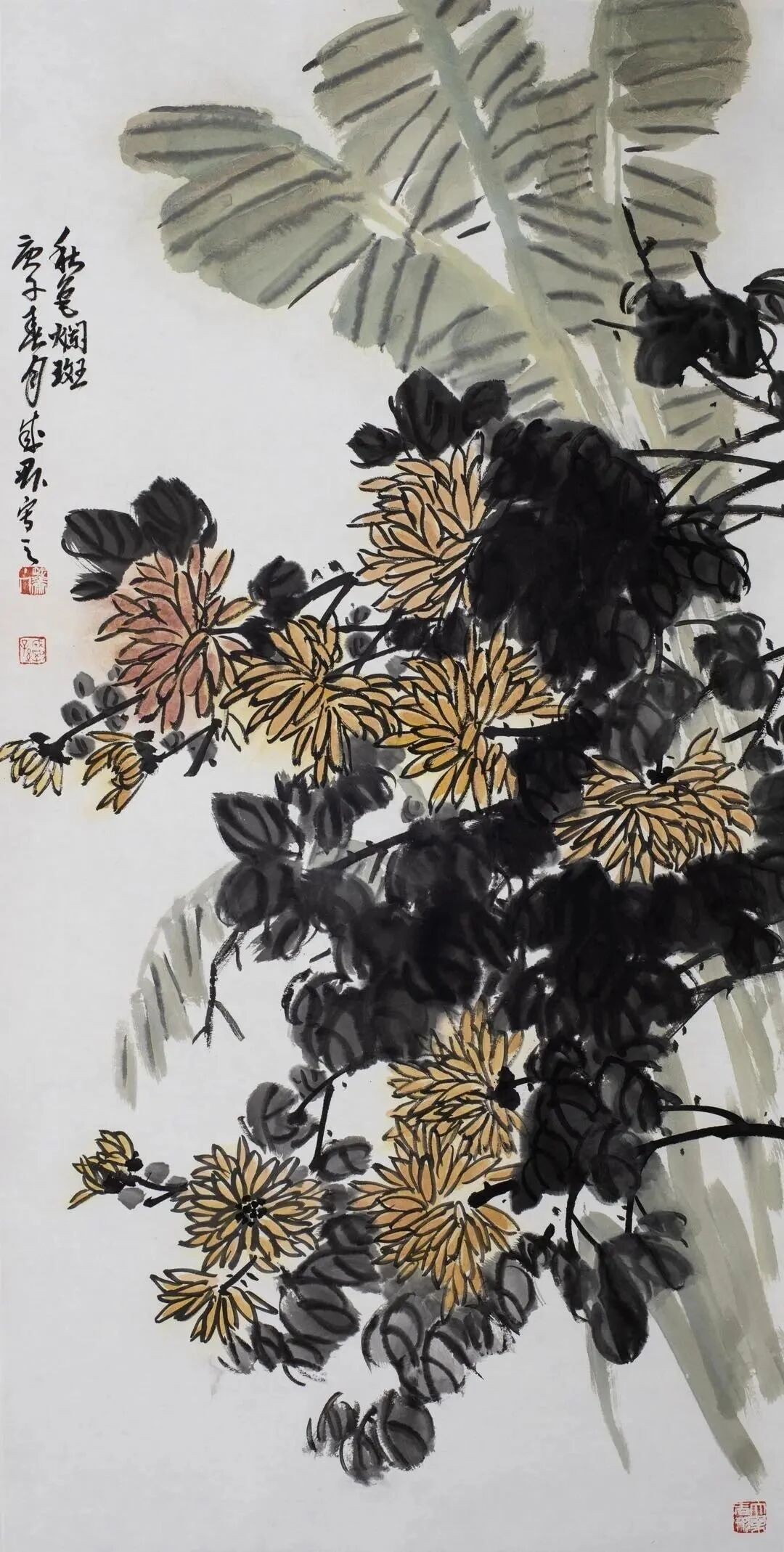 读孙成刚的作品,可以看到他有较为扎实的笔墨造型基本功,他的绘画语言都有一定的出处,从齐白石、潘天寿、李苦禅,直追吴昌硕,他认真研究他们的作品并从中吸收营养。孙成刚的作品之所以有纯正的艺术格调,就是因为他从传统的规范出发,有较高的艺术起点,避免了中国画创作中最忌讳也最容易染上的世俗气、浮躁气和霸气。他同时懂得,从事中国画创作的画家除了要遵从传统规范外,还必须要有个性的表达方式。因此,遵从传统规范与自己个性的结合是他追求的目标。他的笔墨语言之所以严谨、精炼和文气,没有缺乏修养的自我张扬,除了得益于他的传统文化修养外,还由于他意识到在宁静、和谐中讲究艺术表现力,既符合中国画的创造原理,也与他自己的沉静、平和的性格相吻合。他的花鸟画很注意章法,构图大气、整体,画面的黑白、虚实,笔线的轻重、曲折,墨色的浓淡变化,都颇有韵味。在点擦皴染间,显现出他的艺术悟性与灵感。