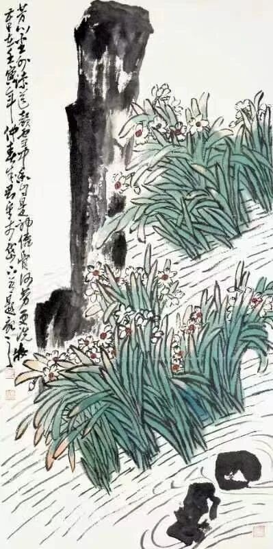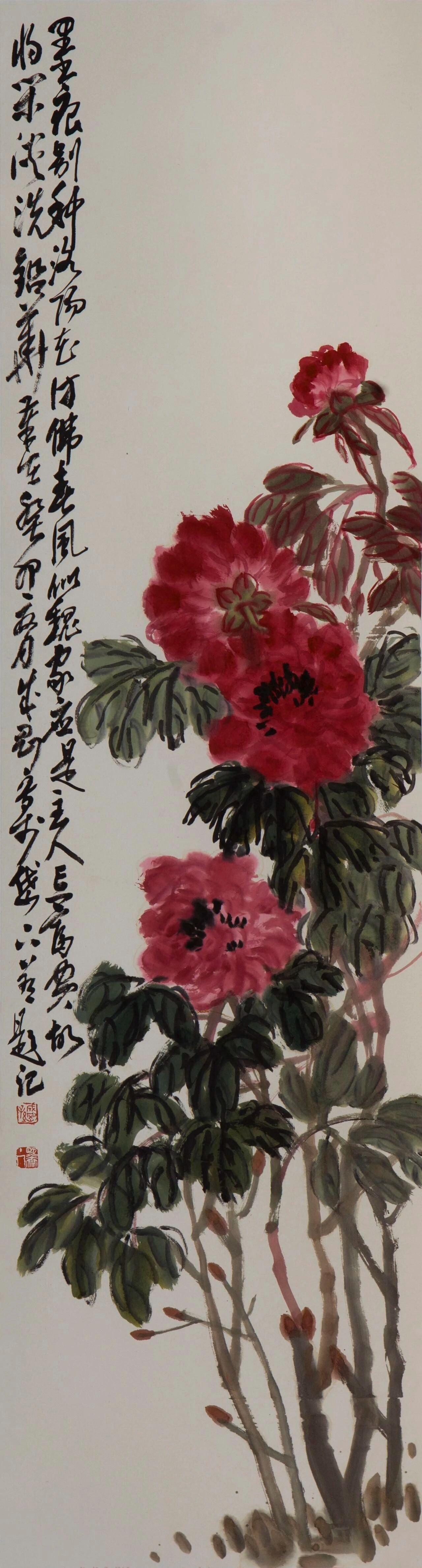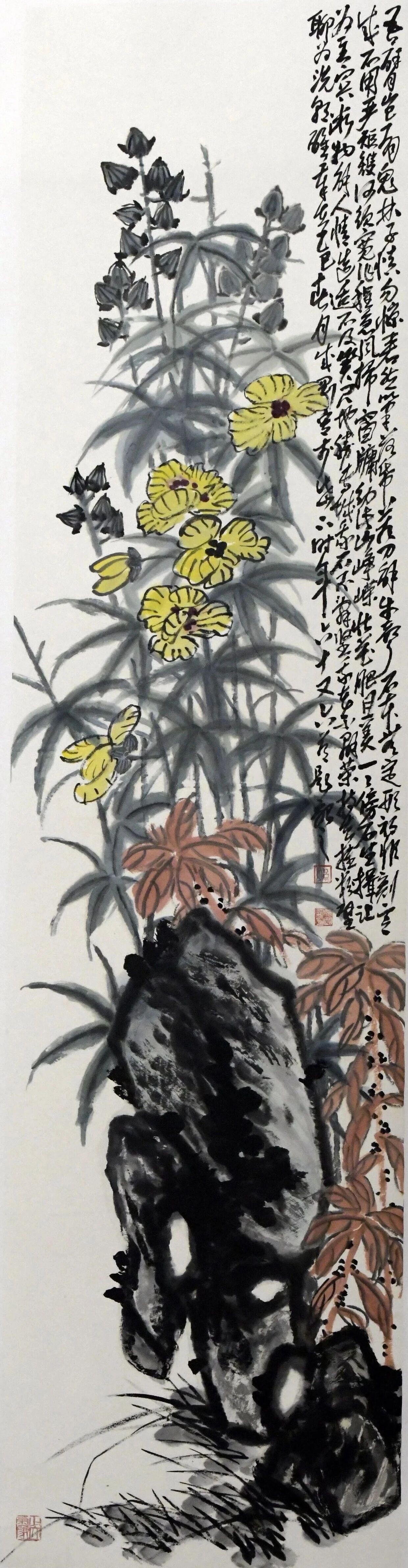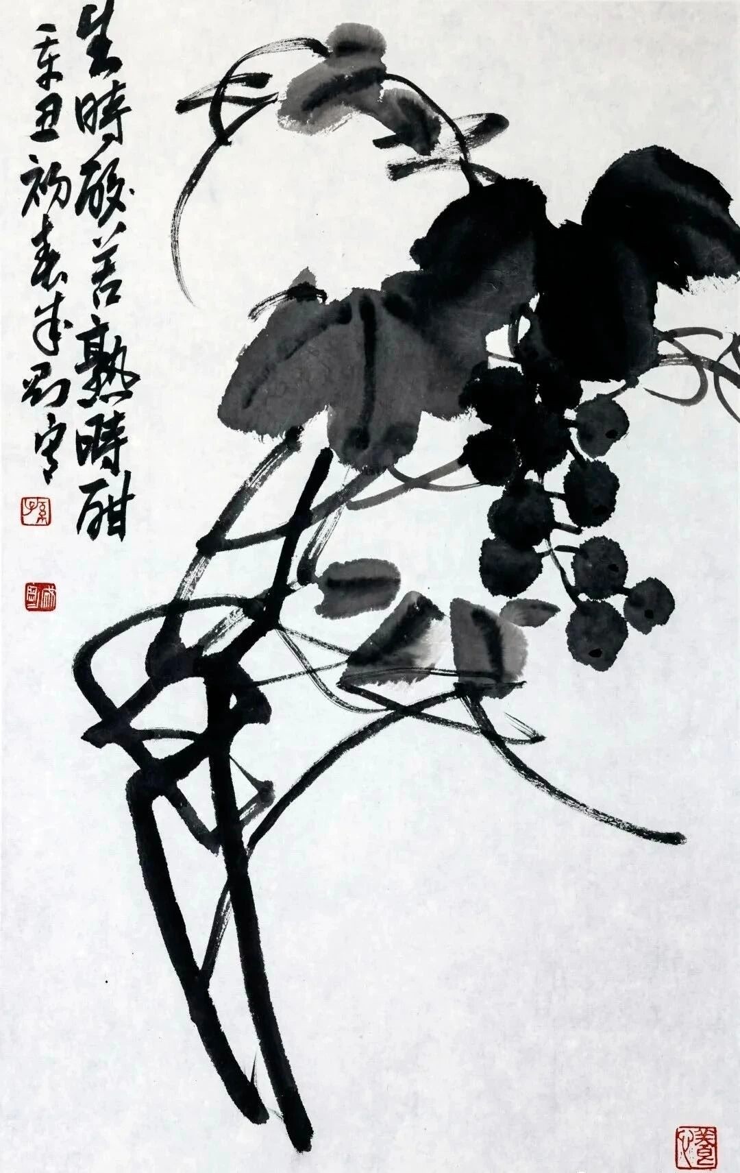 读孙成刚的作品,可以看到他有较为扎实的笔墨造型基本功,他的绘画语言都有一定的出处,从齐白石、潘天寿、李苦禅,直追吴昌硕,他认真研究他们的作品并从中吸收营养。孙成刚的作品之所以有纯正的艺术格调,就是因为他从传统的规范出发,有较高的艺术起点,避免了中国画创作中最忌讳也最容易染上的世俗气、浮躁气和霸气。他同时懂得,从事中国画创作的画家除了要遵从传统规范外,还必须要有个性的表达方式。因此,遵从传统规范与自己个性的结合是他追求的目标。他的笔墨语言之所以严谨、精炼和文气,没有缺乏修养的自我张扬,除了得益于他的传统文化修养外,还由于他意识到在宁静、和谐中讲究艺术表现力,既符合中国画的创造原理,也与他自己的沉静、平和的性格相吻合。他的花鸟画很注意章法,构图大气、整体,画面的黑白、虚实,笔线的轻重、曲折,墨色的浓淡变化,都颇有韵味。在点擦皴染间,显现出他的艺术悟性与灵感。