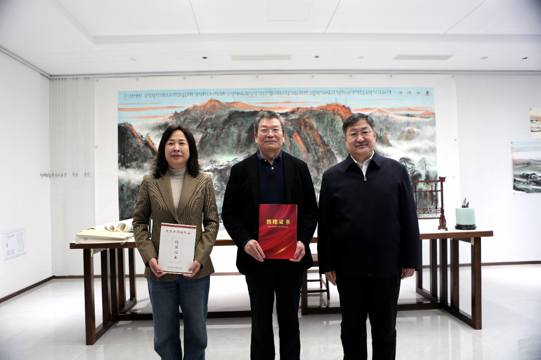 随后,范杰将历时数月创作的480cmx200cm巨幅中国画作品《鲁山旭日》无偿捐赠给学校。该作品以雄浑笔触描绘鲁山日出,寄托了对学校事业如旭日东升的美好祝愿。高霞代表学校接受捐赠并向范杰颁发捐赠证书。