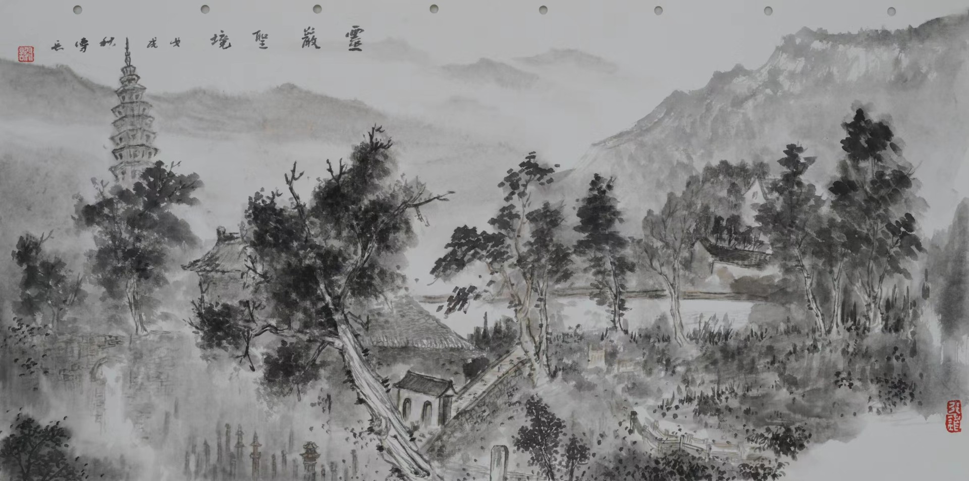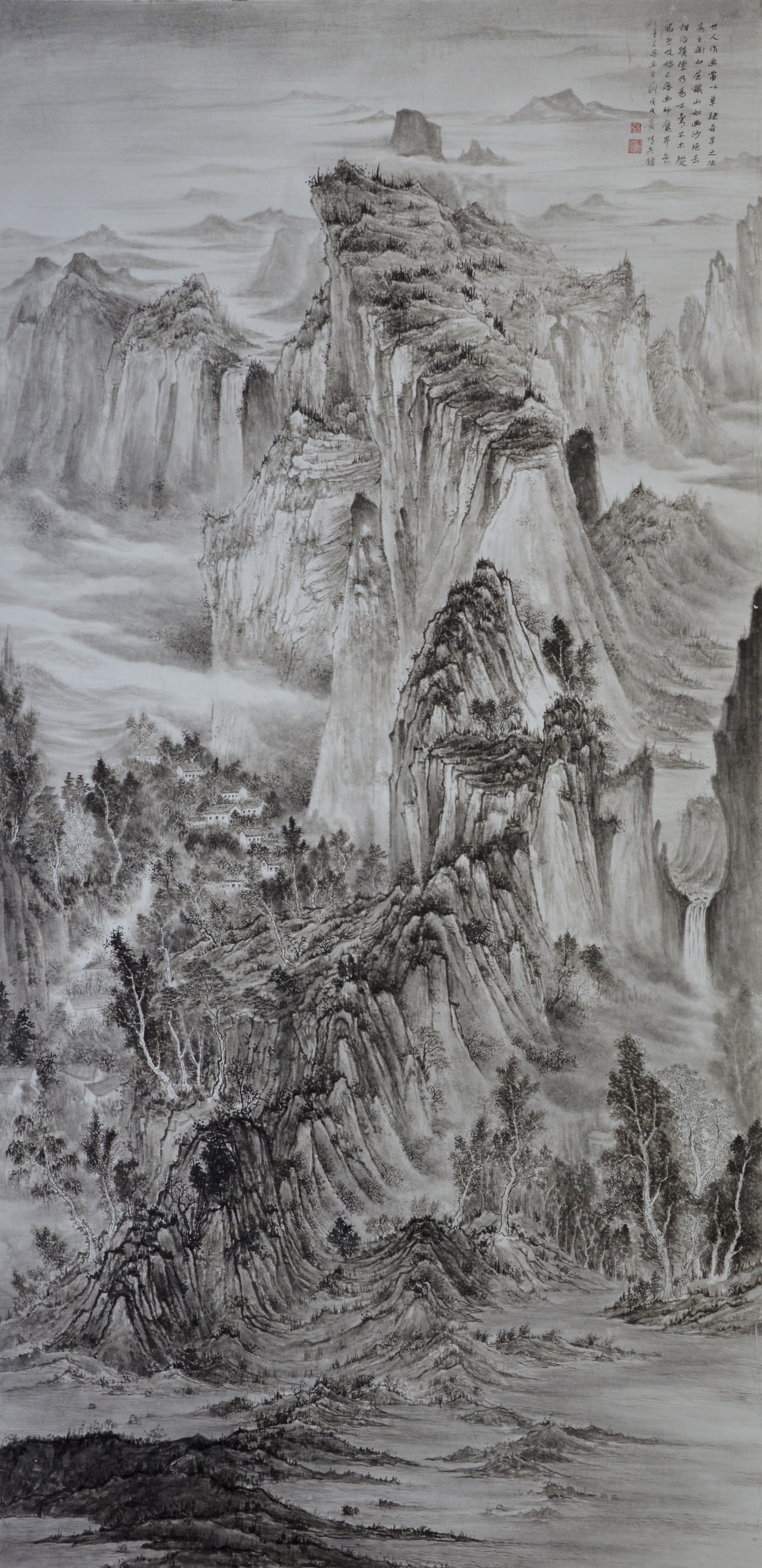 《苍翠满山涧 云起千丈岩》180×90cm中国画作者:谢传兵