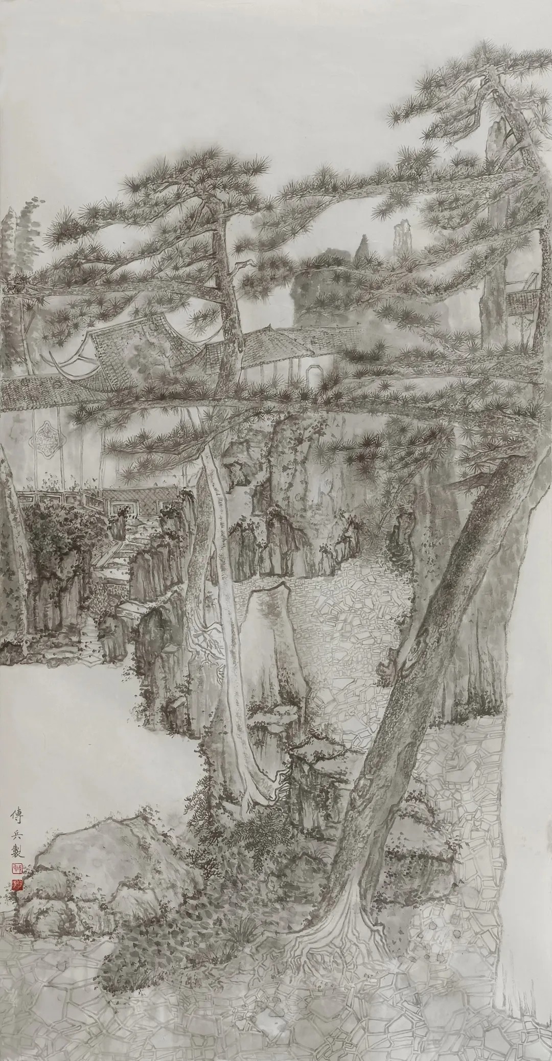 作者:谢传兵 画种:中国画 题目:《变迁》 尺寸:200×200cm