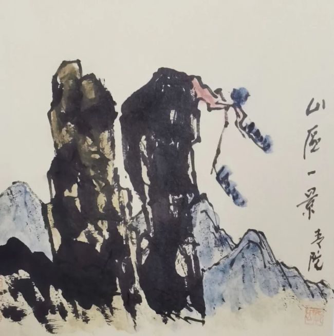 在著书立说之余,先生亦是用“偷得浮生半日闲”的功夫,写书作画,交贤诸友,以遣其兴。严格来讲,郭老的画属“文人画”一路,内容多山水,偶为花卉翎羽,尤以小品居多。其笔底之山,多为胸中之山,无论从技法风格还是师承渊源上,他从不拘泥于某家某派,而是独出胸臆,一意孤行。他用那“奔放不羁的笔触,大胆创新的构图和墨色自由的变幻”为主创思路,彻底打破了当今画坛以技为能、陈陈相因的规矩框架。他下笔果敢,构图新奇,粗笔如铁杵凿石,细笔似游丝穿云。观其笔下之山,简约而不失苍浑,大笔涂抹之间尽显巍峨恢弘之气。山川与景物之间似有云雾萦绕,或远或近,或隐或现,颇有“拨云寻古道,倚树听鸣泉”的玄机之妙。远山如黛,近水含烟,画中意境不时流露出难以言表的氤氲之美,格局大、气象新,令人回味,让人往返。