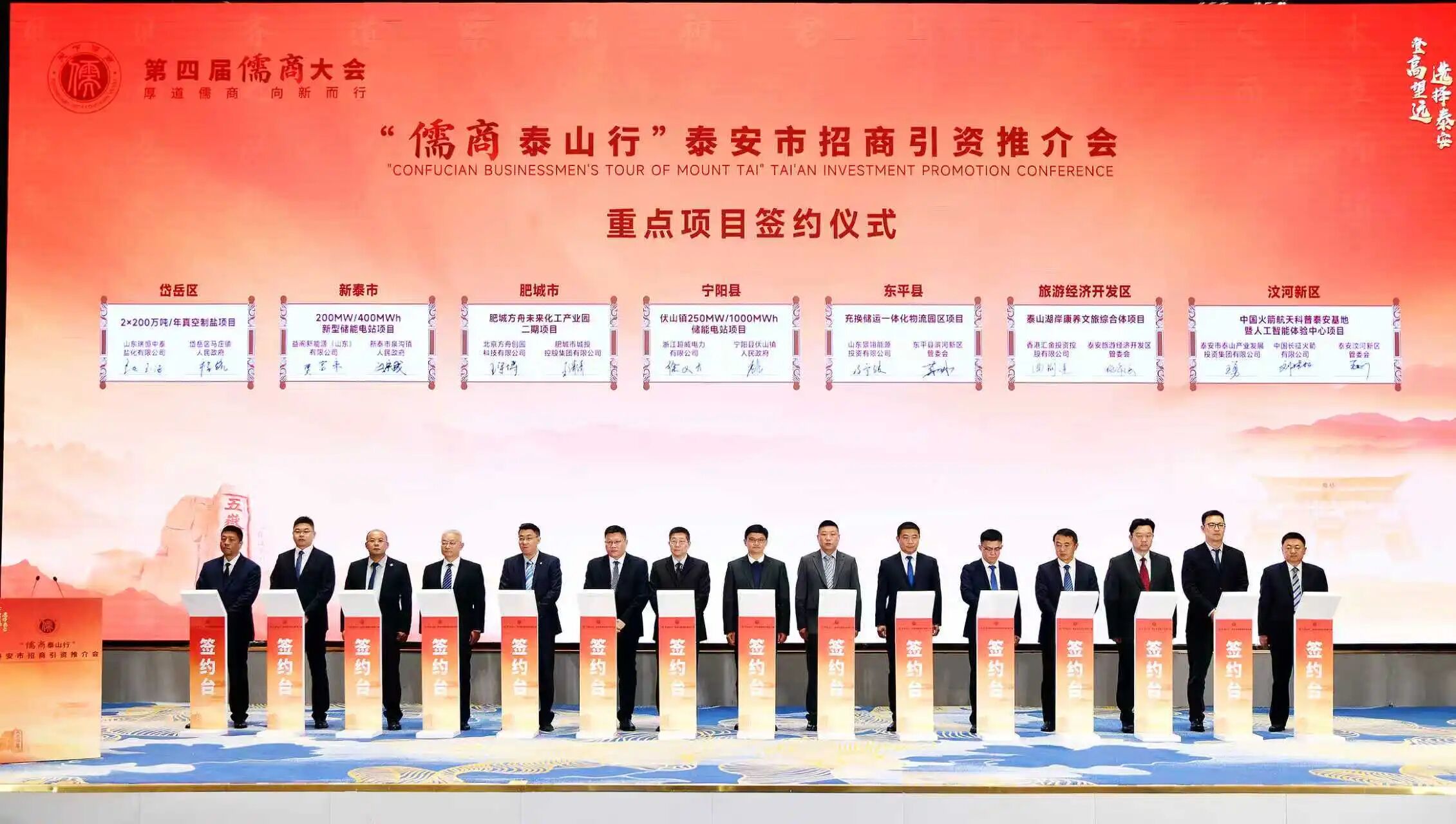 会上,新加坡泺亨集团副总裁韩国庆、上海市泰安商会会长、上海云海翔科新能源科技有限责任公司董事长陈磊、光华荣昌集团董事长、CEO赵月强作为嘉宾代表致辞,充分表达了对泰安发展环境的高度认可与深化合作的强烈意愿。市商务局、市科技局、市自然资源和规划局、市工业推进办分别围绕消费新业态、场景创新、三维选地平台、泰山产业会客厅等内容作了重点招商场景与政策推介,清晰呈现“泰安机遇”与“泰安服务”,为参会企业找准投资方向提供精准指引。重点项目签约仪式上,一批赛道清晰、成长性好、后劲充足的合作项目集中签约,涵盖高端制造、盐化工、新型储能等多个领域,将为泰安新型工业化强市建设注入强劲动力。