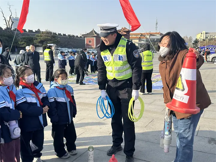 学生成为活动中活跃的群体。来自山东省泰安师范学校附属学校、泰山区育星幼儿园等学校的学生们在老师带领下,向在场的市民发放交通安全宣传资料,并轮流体验交通安全九宫格游戏。“作为一名教师,我们深知教书育人不可分离,我们不仅要在教室里传授交通安全知识,更要在孩子们心中培植敬畏规则的‘根’,浇灌文明礼让的‘魂’。”山东省泰安师范学校附属学校校团委书记徐纪东说。