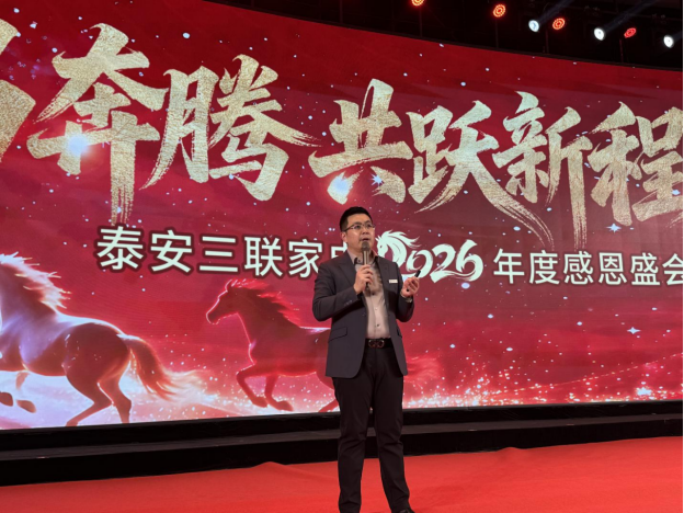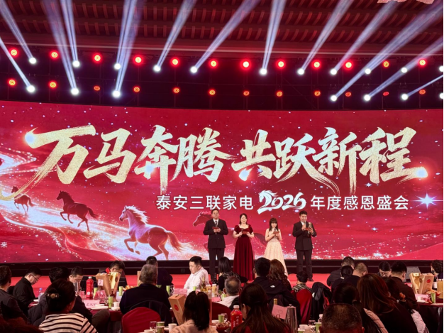 1月15日,泰安三联家电在泰安宝盛道谷酒店成功举办“万马奔腾 共跃新程”2026年度感恩盛会,正式宣布从传统家电卖场向“一站式家居生活服务商”转型,并启动“三联大家居”战略升级项目。