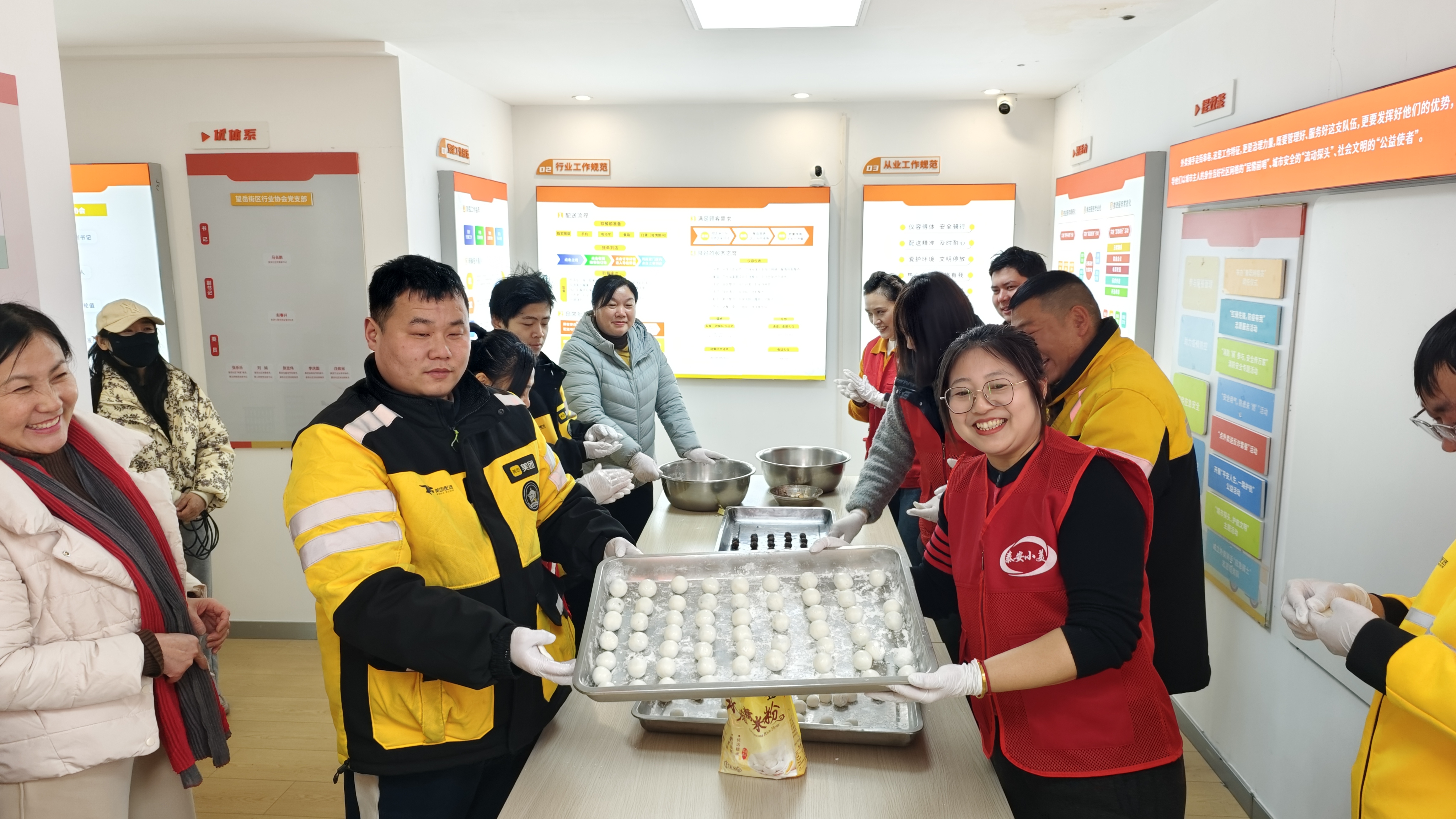 为深化对新就业群体的关心关爱,进一步增强社区凝聚力,近日,泰山区财源街道望岳社区社会工作办、妇联、科协、计生协依托暖“新”驿站,联合开展“元宵送温暖 情系新业态”主题关爱活动,邀请外卖骑手代表欢聚一堂,共包汤圆、同品美食,在浓浓的节日氛围中传递社区温情。