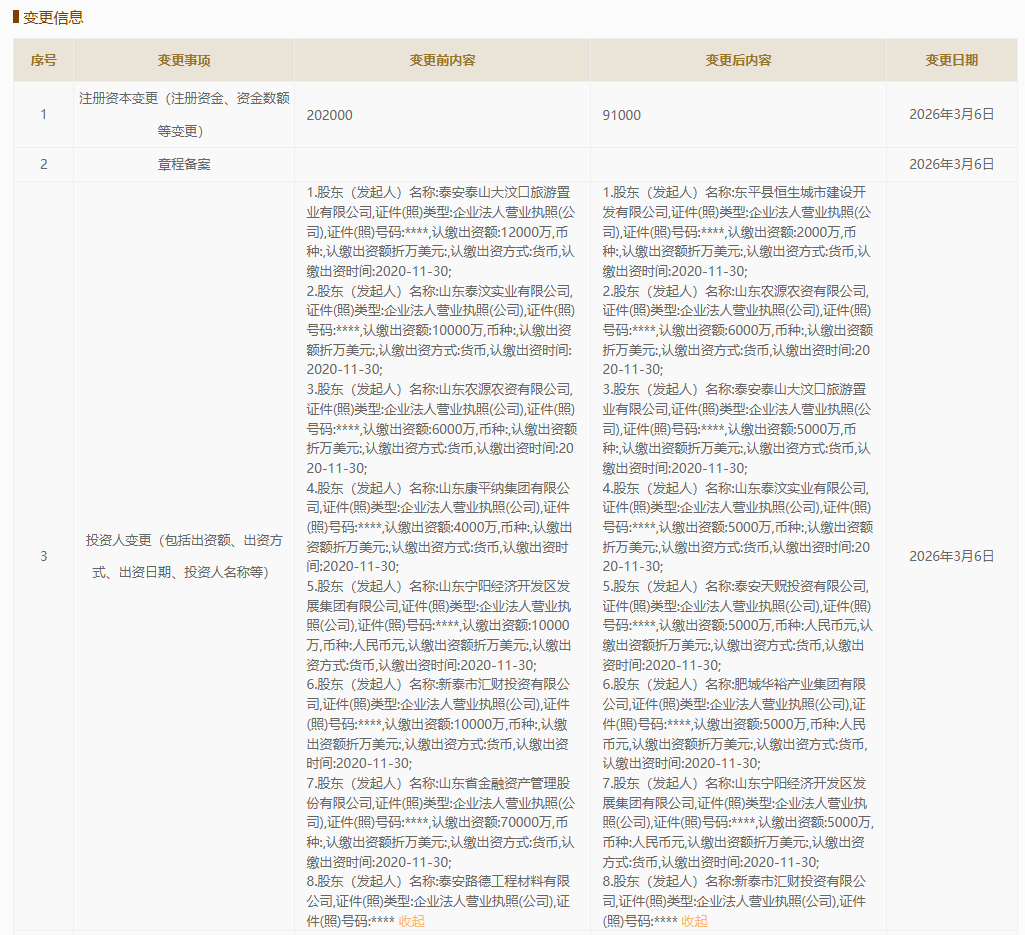 泰山金融资管注册资本减少11.1亿元,三家股东退出